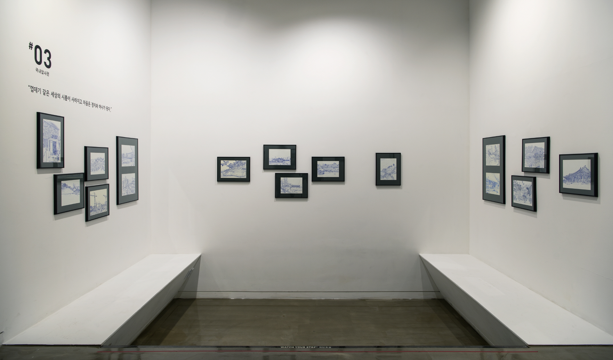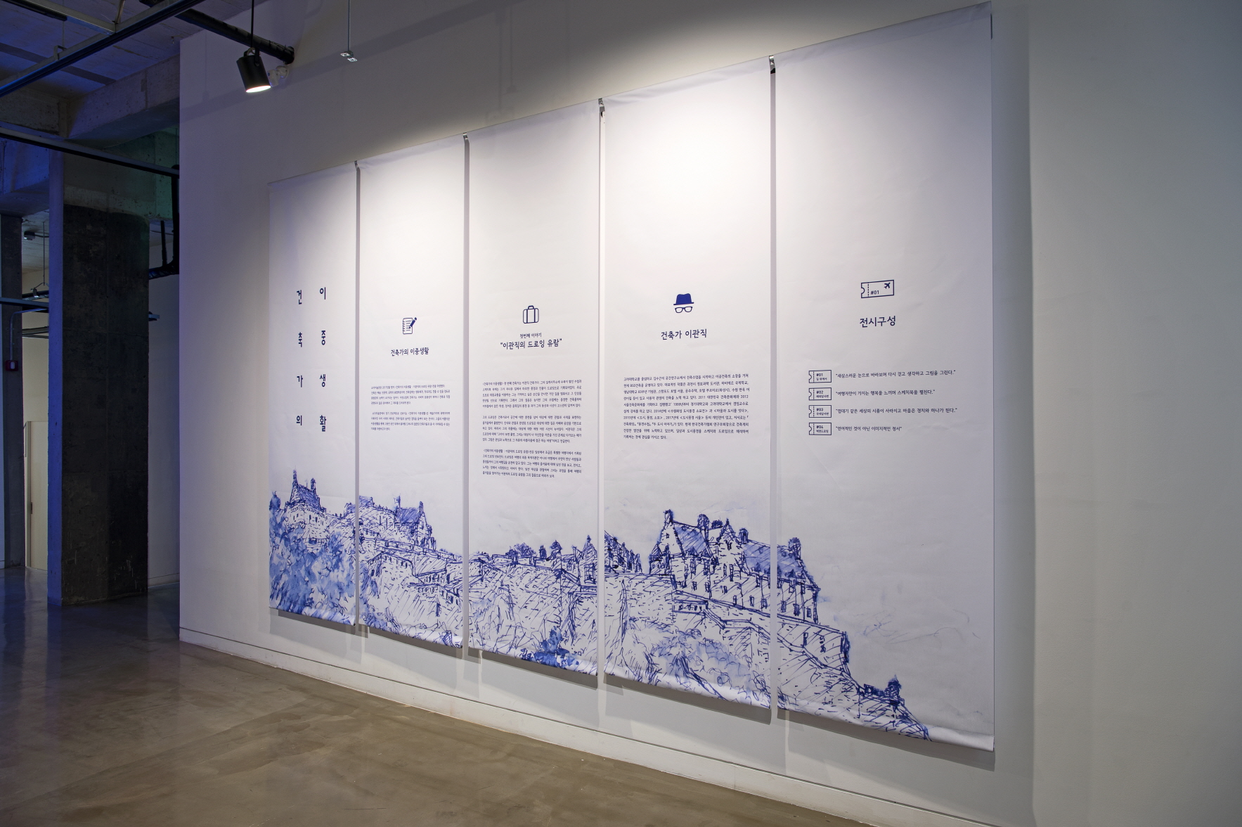 <건축가의 이중생활 : 이관직의 드로잉 유람>전은 일상에서 조금은 특별한 여행지에서 기록된 그의 드로잉 선보인다. 드로잉은 여행의 최종 목적지뿐만 아니라 여행에서 우연히 만난 사람들과 풍경들까지 그의 여행길을 온전히 담고 있다. 그는 여행의 즐거움에 대해 낯선 것을 보고, 만지고, 느끼는 것에서 시작된다고 이야기 한다. 낯선 대상을 관찰하며 그리는 과정을 통해 여행의 즐거움을 찾아가는 이관직의 드로잉 유람을 그의 걸음으로 따라가 보자.