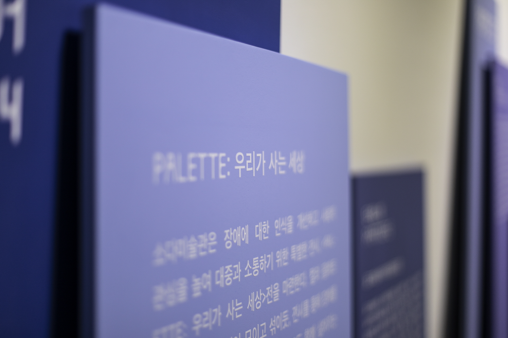 소다미술관은 장애에 대한 인식을 개선하고 사회적 관심을 높여 대중과 소통하기 위한 특별한 전시 <우리가 사는 세상>전을 마련한다. 컬러 팔레트 위에서 다양한 색이 모이고 섞이듯, 전시를 통해 장애를 떠나 경계와 편견 없는 세상에서 모두 함께 살아가는 세상을 보여주고자 하였다.