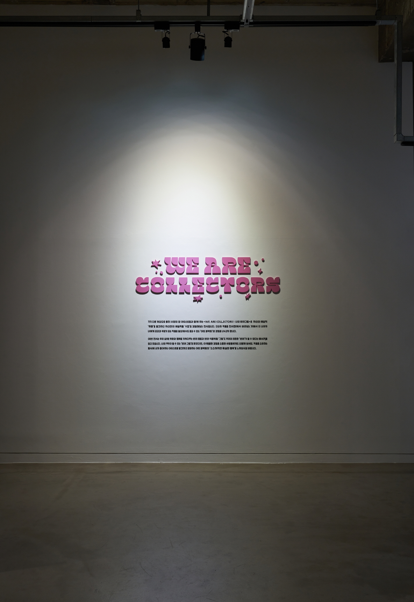 각기 다른 개성으로 뭉친 33명의 영 아티스트들과 함께 하는 <WE ARE COLLECTORS! : 나의 반려그림>은 자신의 예술적 ‘취향’을 발견하고 자신만의 예술 작품 ‘수집’을 경험해보는 전시입니다. 단순히 작품을 전시장에서 바라보는 것에서 더 나아가 나에게 공감과 위로가 되는 작품을 일상에서도 즐길 수 있는 ‘아트 컬렉팅’의 경험을 나누고자 합니다.